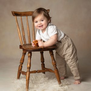De flesta bebisar i denna ålder kan stå upp, med stöd av en stol eller helt själv! Oavsett brukar det bli en rolig och fartfylld fotostund med stor variation på bilderna! Cake smash och badbilder ingår om ni vill det! En rolig fotostund full med upptäckarglädje, skratt och lek.